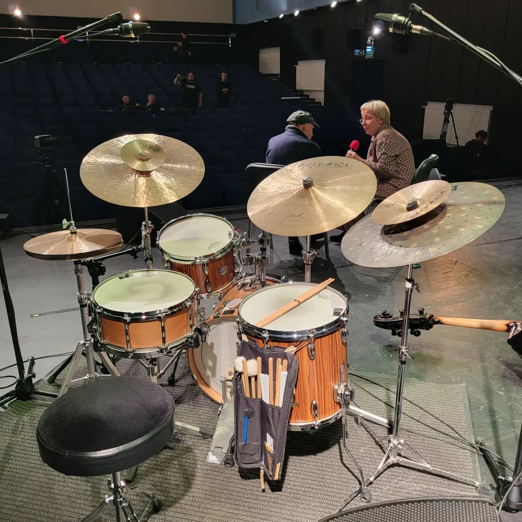 • Przed koncertem na Bydgoszcz Jazz Festival. Na drugim planie – Magda Jasińska rozmawia z Ptaszynem – Bydgoszcz, 1.11.2023